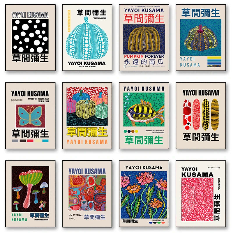 Yayoi Kusama Art Exhibition Pumpkin Flower Wall Art Poster Print Abstract Canvas Painting Suitable for Modern Room Home Decor